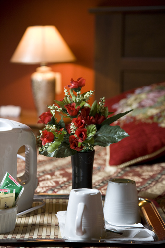 ottima colazione servita in una sala a uffet affrescata