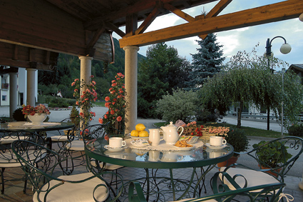 In splendida posizione soleggiata, circondato da un grande giardino rinnovato ed attrezzato con giochi per bambini, grande terrazza solarium e verande, a 200 metri dal centro del paese ed a 200 metri dal bosco e dalla pista ciclabile che costeggia il fiume Noce ed attraversa tutta la Val di Sole.