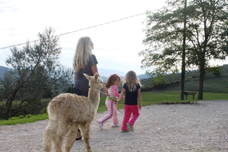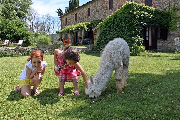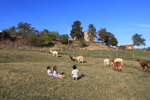 Per i bambini è a disposizione un parco giochi con altalene e scivolo. I bambini, inoltre, possono godere della compagnia degli alpaca, molto docili e gentili, dando loro da mangiare e portandoli alla cavezza.Dai casali partono dei sentieri tra i boschi ed i prati dell´azienda per percorsi facili che possono essere fatti dai bambini insieme ai genitori accompagnati anche dagli alpaca.