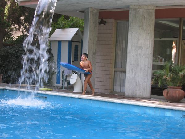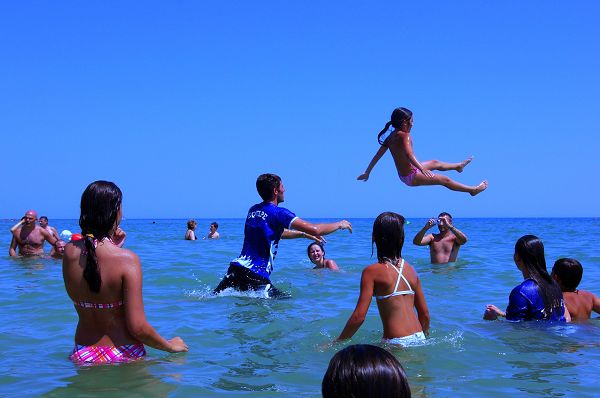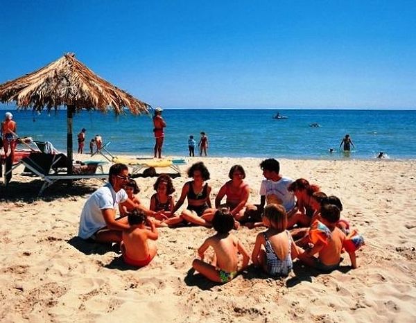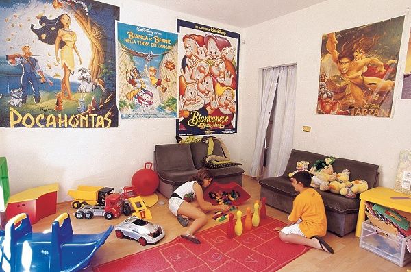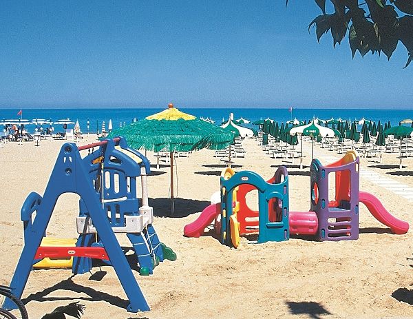 I bimbi giocano tra loro e con il mini club nel parco giochi in giardino e in spiaggia e nella saletta interna.