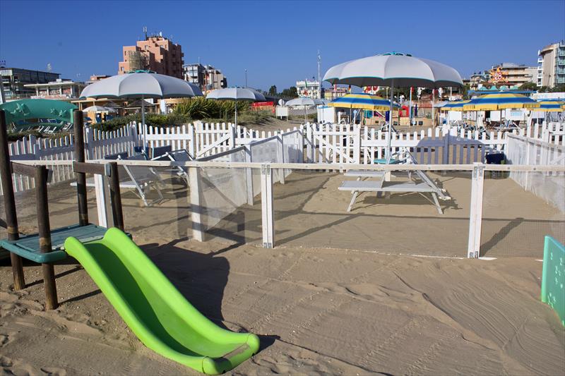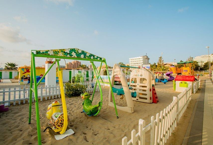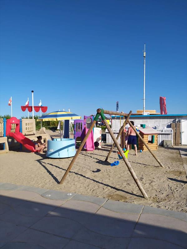 -spiaggia con giochi per bambini e animazione diurna