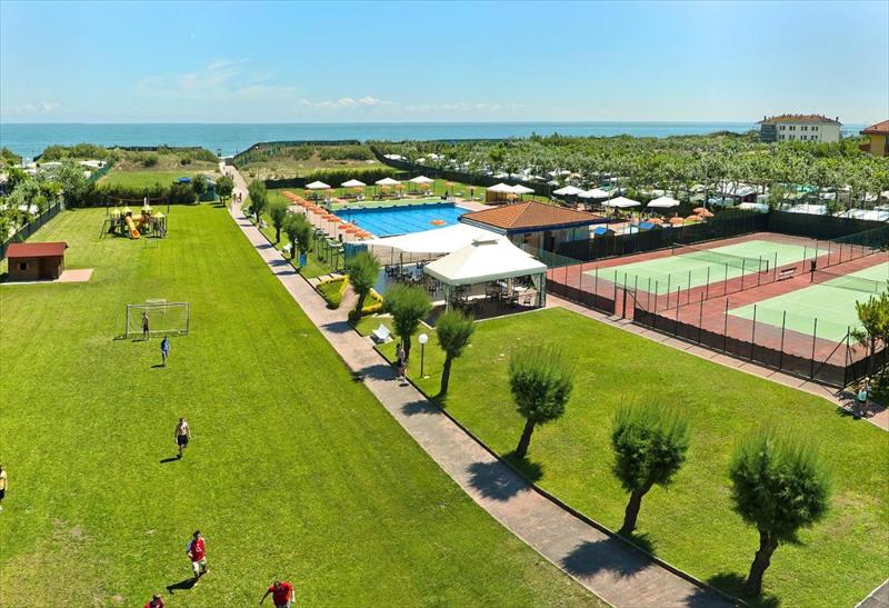 Fronte mare ed immerso in un’oasi di verde, dispone di 3 piscine, per adulti e per bambini con idromassaggio, servizio animazione, spiaggia privata, campi da tennis, bar ed un attrezzato parco giochi per bambini.