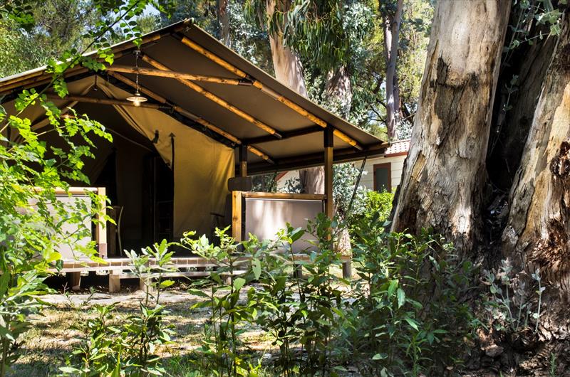 case mobili e tenda con soppalco, dotate di due/tre camere da letto, uno/due bagno con doccia, aria condizionata, super accessoriate; macchina del caffè, phone, cassaforte, forno a microonde, TV, lavastoviglie, barbecue a gas, Jacuzzi, una vacanza di lusso.