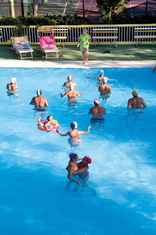 Nel piazzale intorno alle piscine si svolgono intense e differenti attività di animazione: il risveglio muscolare tonificante, balli di gruppo, gare, giochi e acquagym in un susseguirsi di entusiasmanti momenti di comune partecipazione e di soste riposanti da dedicare ad attività di riflessione (lettura, conversazione o altro).