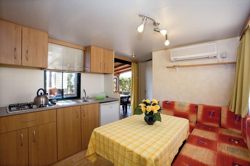 Oltre ad ampie piazzole ombreggiate, dispone di comode case mobili e miniappartamenti in muratura.
