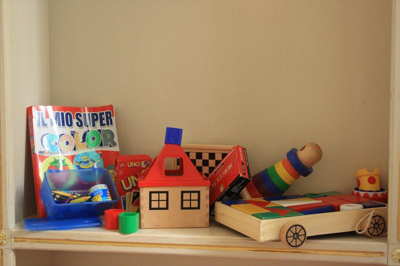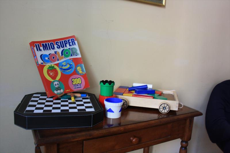 Tutti gli appartamenti sono forniti di culla con lenzuola, copertine e asciugamani, seggiolone, fasciatoio, piccoli giochi, piatti e posate per bambini, giochi da tavolo, libri da colorare con matite e cancelleria varia.