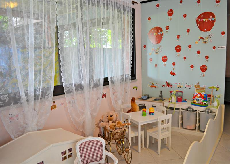 La struttura è dotata di area giochi interna, area giochi in piscina, seggioloni, culla e vaschetta per bagnetto su richiesta.
