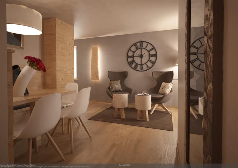 L’atmosfera si vive anche in Hotel, gli ambienti sono stati rinnovati rispettando il gusto e lo stile montano,